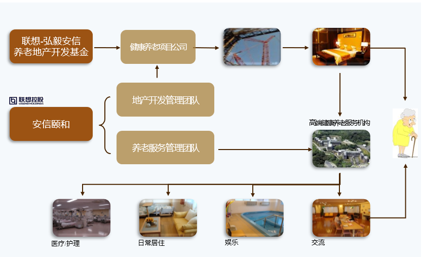 作为联想控股成员企业,安信颐和自带“光环”,成为早期养老行业的明星企业,公司早期专注于3个方向:养老机构运营、养老项目开发、以及联想-弘毅健康养老产业基金管理,从而构建“资本-开发-运营”的养老商业闭环。