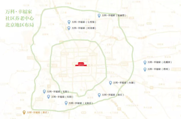 同年10月,万科召开养老品牌发布会,宣布万科在北京区域的首个自持养老项目——万科 幸福家社区养老中心正式对外开放,并公布了万科在北京区域(北京、香河、秦皇岛)第一阶段的养老战略布局:10个项目+90000㎡+3000床位。