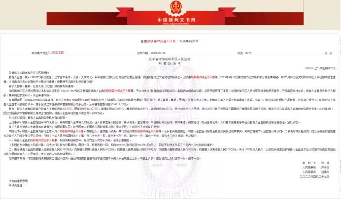 近日,中国裁判文书网公布了一则刑事判决书,在三年多的时间里,中信银行沈阳分行南站支行营业经理金某先后将到该行购买理财产品的多名客户资金不入账,获取客户密码后,将客户购买的理财产品撤单,将客户银行卡内的资金转入自己的银行卡中,其中1000万元被金某用来投资辽宁国鼎资产管理有限公司子公司,从中赚取差额利息300多万。