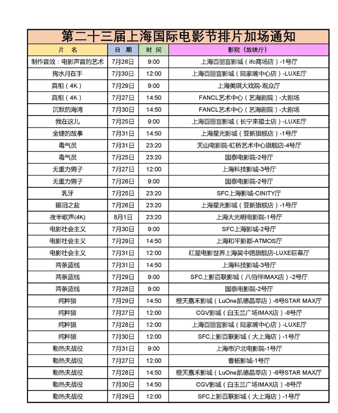 据上海发布消息,第23届上海国际电影节影院展映影片将增加29场排片,影片包括《沉默的海湾》《无重力男子》《夜半歌声(4K)》等。今天上午10:00起 ,可通过线上购买该批加场的电影票。加场片单详见↓ 有你感兴趣的影片吗?
