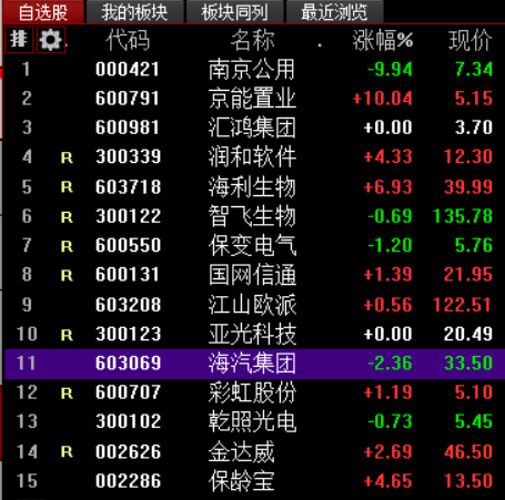市场焦点股南京公用(6板)一字跌停,蚂蚁金服概念京能置业竞价涨停、汇鸿集团平开、润和软件高开4.33%,生物疫苗板块海利生物高开6.93%、智飞生物低开0.69%,电力物联网板块保变电气低开1.20%、国网信通高开1.39%,精装修板块江山欧派高开0.56%,军工板块亚光科技(3板)平开,免税板块海汽集团(15天11板)低开2.36%,OLED板块彩虹股份高开1.19%,MiniLED板块乾照光电低开0.73%,长寿药NMN板块金达威(9天7板)高开2.69%,赤藓糖醇概念保龄宝(8天5板)高开4.65%。