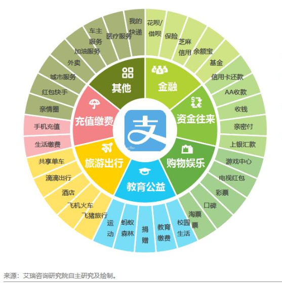 支付宝作为普通人与蚂蚁接触的最直接途径,已经融合了支付、融资、保险、征信、银行等各项金融业务,拿到了全金融牌照。