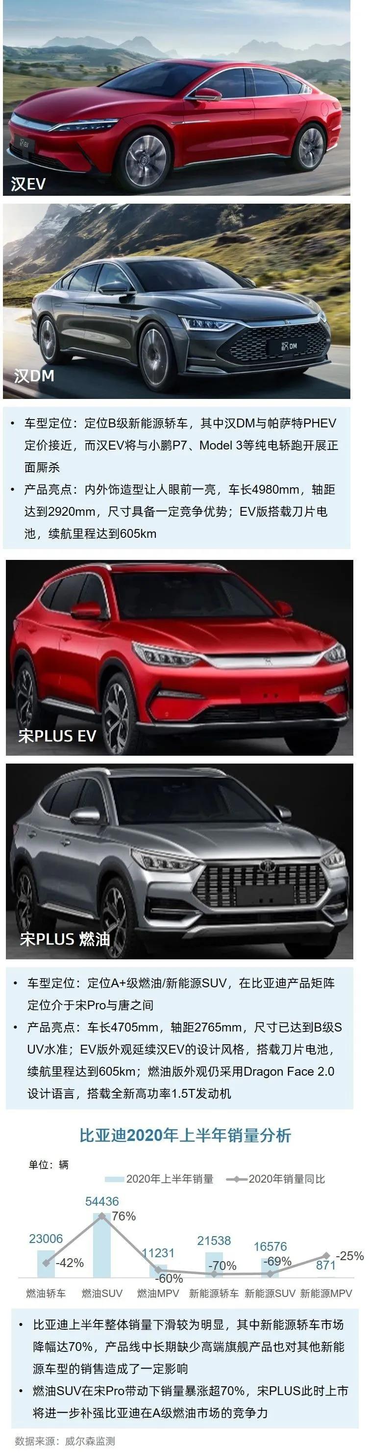 比亚迪近期发布的汉EV、汉DM、宋PLUS燃油、宋PLUS EV等多款重磅全新车型将亮相成都车展。受多种因素影响,比亚迪乘用车上半年销量表现不如预期,汉与宋PLUS的上市或将起到有效的带动作用。