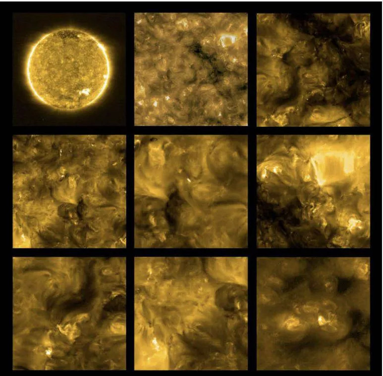 这些照片显示了太阳日冕(太阳大气的最外层)持续不断的风暴活动,并且能看出其活动范围仅为250到310英里。特别值得一提的是,这些照片拍摄到了太阳表面附近的小型“篝火”状太阳耀斑。“我们以前从未能清晰地看到它们,所以这次真的很兴奋,”本次任务的极端紫外成像仪的首席研究员大卫·朗说。