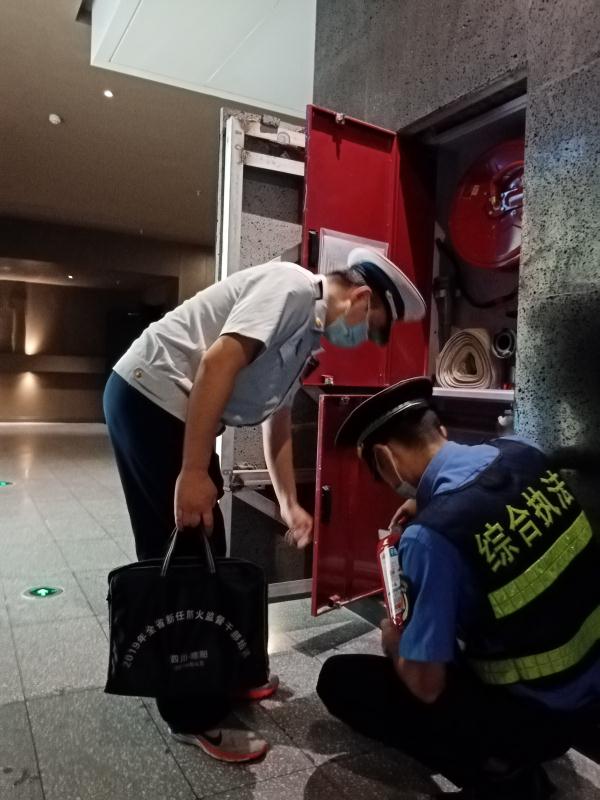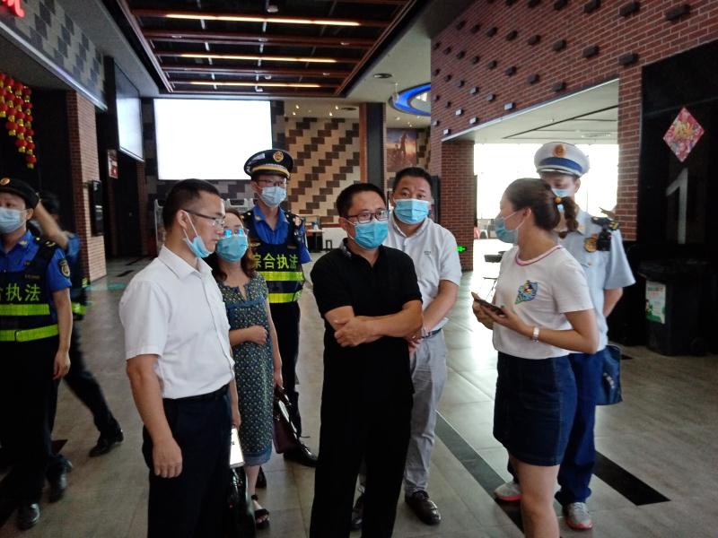 每到一家影院,检查组都要查看单位场所是否建立应急预案,防疫物资储备和疫情防控具体措施,听取影院相关负责人情况介绍。从影院售票、座位安排到排气通风,从姓名登记到体温检测,从灭火器、消火栓是否保持完好有效到疏散楼梯是否畅通,检查组各职能部门根据自己分工,逐条逐项进行检查,不走马观花错漏一个环节。