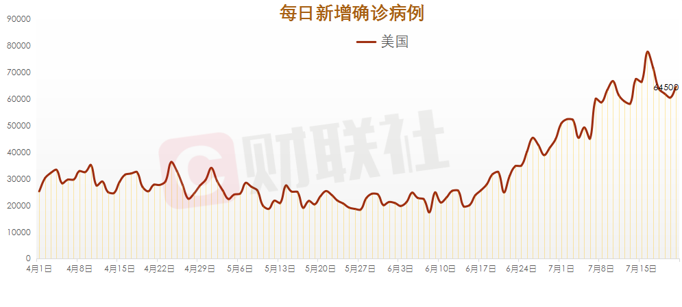 据美国约翰斯·霍普金斯大学的疫情统计数据显示,7月21日全天,全球新增新冠肺炎确诊病例23.97万例,其中,美国新增新冠肺炎确诊病例6.45万例。截至北京时间7月22日14:00,全球累计确诊病例1495.13万例,累计死亡人数61.66万例。美国累计确诊390.2万例。