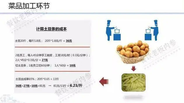 精细化管理专家、日本物语集团董事卢南曾以一颗土豆剖析餐厅损耗。