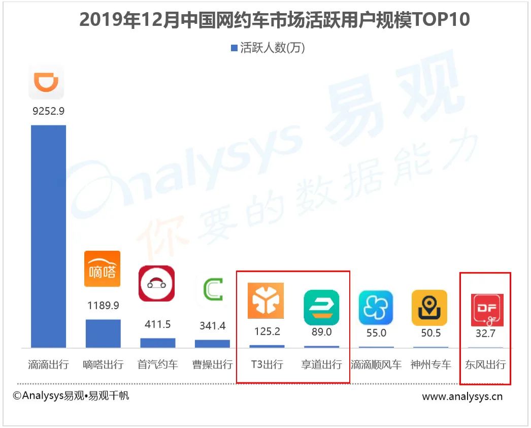 2019年12月中国网约车市场用户规模,图源易观