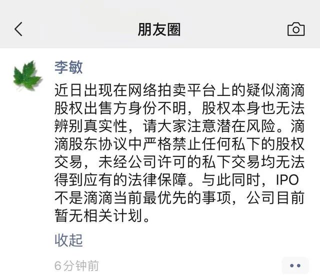 滴滴副总裁李敏朋友圈,图源网络