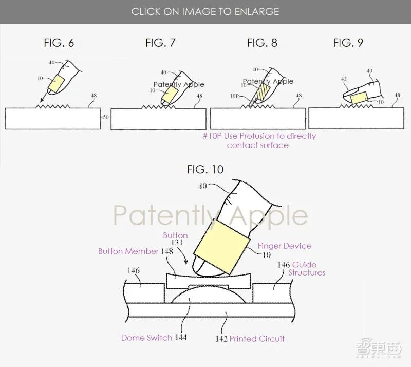 苹果对于AR眼镜的专利投入不止在眼镜本身,在配件方面的专利也不甘示弱。今年的6月4日,美国专利商标局发布了苹果申请的一项“手指传感器设备”专利,以用来配合未来的AR眼镜及其他头显设备。在此之前,苹果已经申请了5个手指设备专利以配合未来头显设备的使用。
