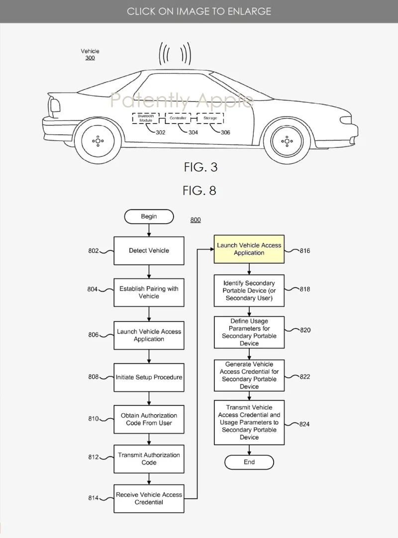 在2019年,苹果又申请了新的“车辆授权的系统和方法”专利,这个系统将提供车辆和iPhone持有者之间的通信,允许用户执行某些任务,例如打开车门等。