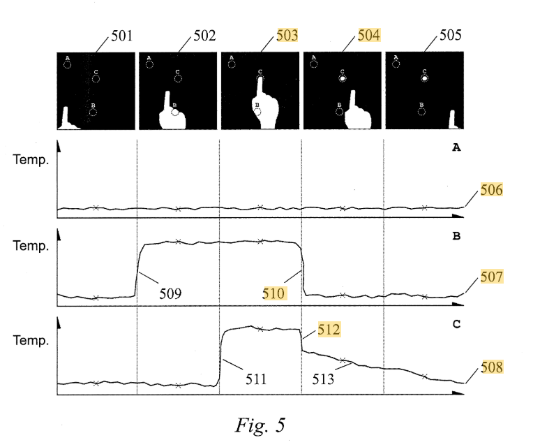 苹果的想法是,可以通过红外热感应来检测用户何时触摸现实世界的物体,这个方法可以让Apple Glass在视觉上将控件投射到现实世界的物体上,并在用户触摸这些物体时,通过感知触摸物体时的热传导来做出反应。