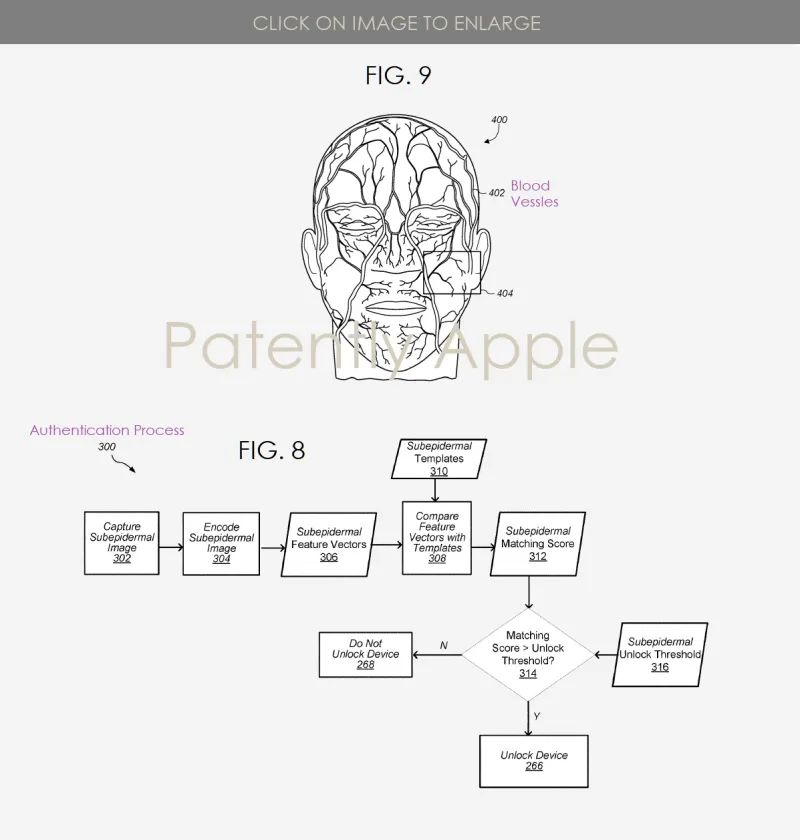 苹果在静脉识别方面下的功夫不止于此,在昨天美国专利商标局新公布的授予苹果的50项专利中,涵盖了一项名为“用于困难的生物识别认证案例的静脉匹配”的专利。