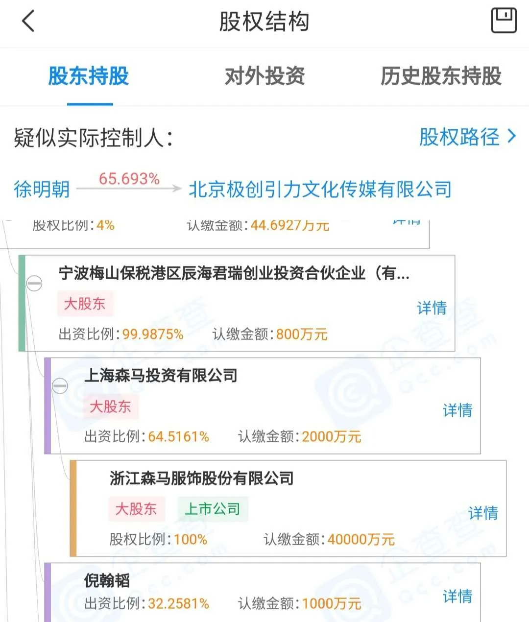 值得一提的是,极创引力自成立以来一直默默无闻。直到2018年夏天,《创造101》火爆全网,艺人Yamy成功出道,作为背后经纪公司,极创引力这才被真正关注到,获得融资。企查查显示,目前,上市公司森马服饰等多家公司间接持有该公司股份。
