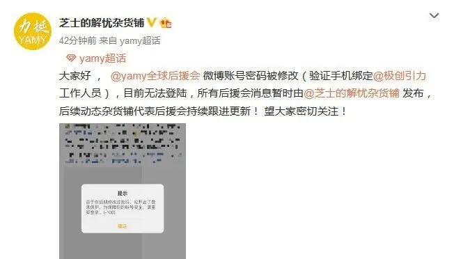 事件发生后,极创引力工作人员修改了Yamy全球后援会账号与密码,导致该账户目前无法登陆。诚然,艺人是经纪公司一手打造与包装,完美呈现在前台的互动形象,但在新生代崛起占据主流和话语权的语境里,执意按照传统管理方法要求艺人言听计从,实现掌控,大概率是行不通了。