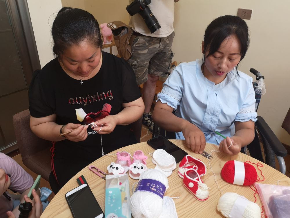 “开始我不好意思出来,怕学不会,别人笑话我。”李荣华说,残联的工作人员多次上门开导,坚定了她参加培训的信心。然后她自己又在网上找视频自学,逐渐能织出一些简单的东西。