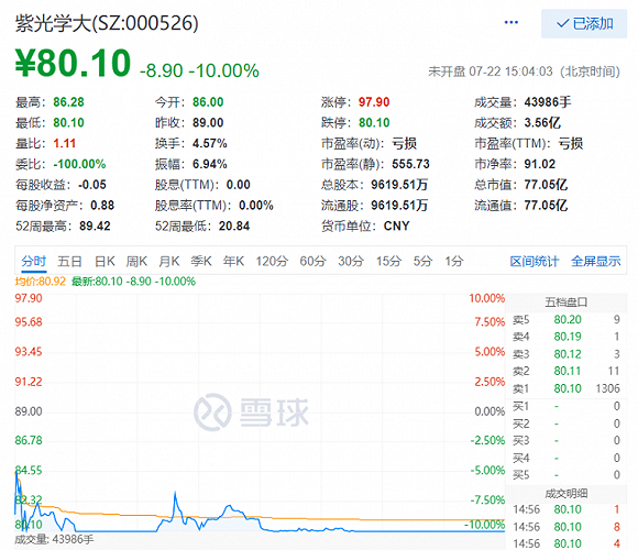 华西、中泰、光大、国金等多家券商,自天津安特成为紫光学大第一大股东时,就纷纷对金鑫归来后的紫光学大持积极态度。但与之形成鲜明对比的是,昨日紫光学大开盘股价即大跌,最终报80.10元/股,以跌停收盘。