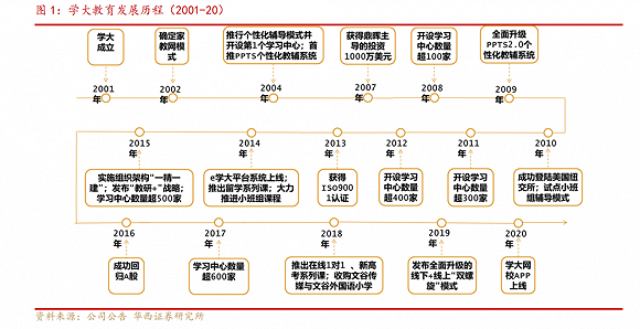 学大教育于2001年成立,以线上家教平台起家,2004年转型线下并创立了一对一培训模式,2010年登陆美股、2016年回归A股。
