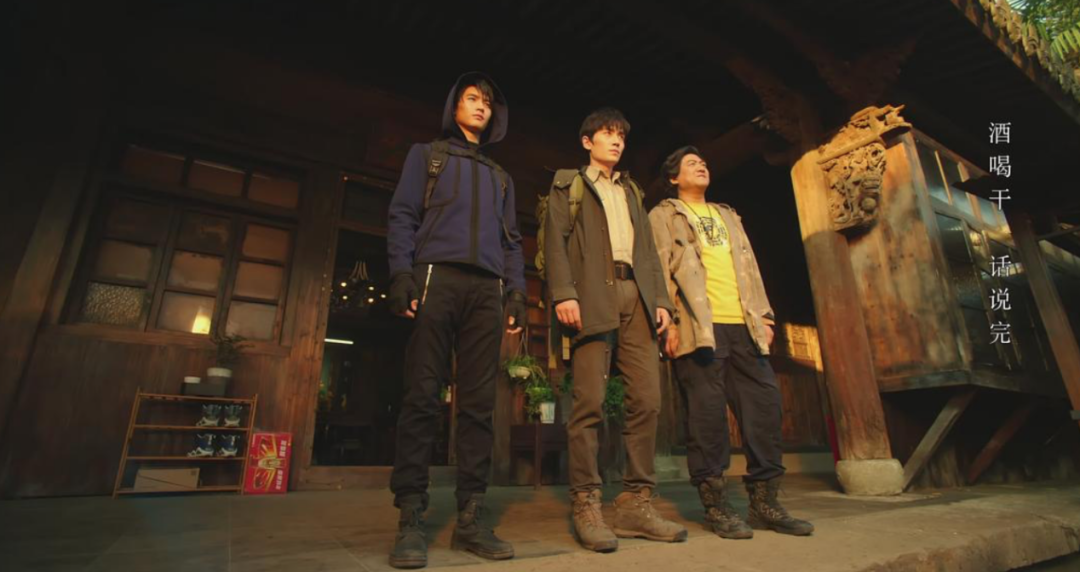 剧中的服化道采用现实主义风格,装备包含多功能双肩包、冲锋衣、皮手套、手电筒等等,人物脏乱差的没有一丝矫情,很符合下墓的铁三角造型。