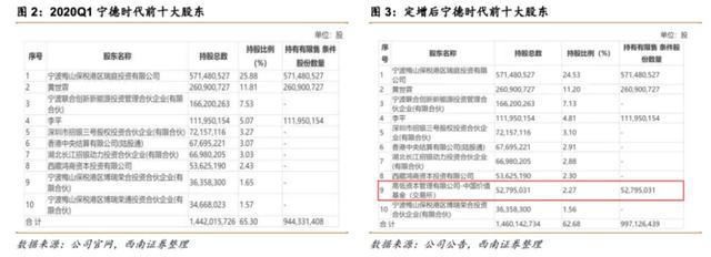 定增完成后,高瓴资本持股2.27%,成为宁德时代的第九大股东。