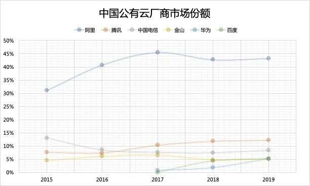 至于华为,则乘着运营商的东风在政务云市场混得风生水起,去年终于挤进了TOP 5。