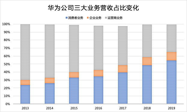 当4G建设告一段落,华为又被限制进入“五眼联盟”治下西方世界的核心组网,运营商业务增长的疲态尽显,这时让华为风头无两的消费者业务扛起了集团营收的大旗。