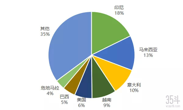 中国进口咖啡来源国占比统计;来源:前瞻研究院