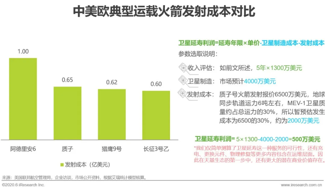 MEV-1延寿卫星的主要成本有两个方面,第一是卫星本身的制造成本,第二是发射成本。根据目前公开的情报来看,诺格公司并未公布MEV-1延寿卫星的造价,但市场普遍估算其制造成本大约为4000万美元,由于MEV-1卫星的发射,是由俄罗斯质子火箭以一箭双星的方式发射升空,并且2.36吨的重量只占质子火箭总运力的30%,所以理论上发射成本不是一枚火箭的总报价。