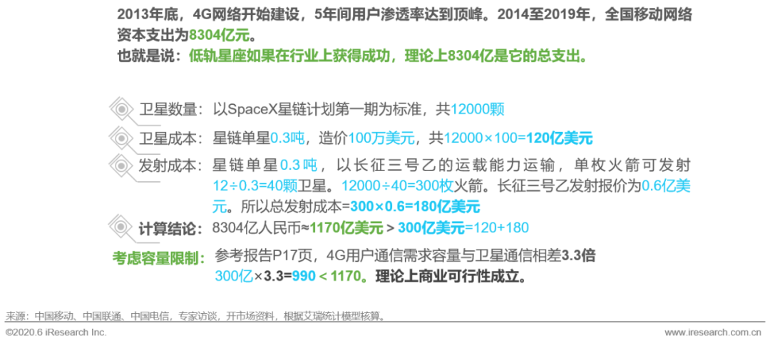 对于通信等行业外应用,现在天基的基础设施能力较弱,以全球最优秀的低轨星座SpaceX星链来看,一期组网成功后一共12000颗卫星(在此暂且忽略卫星组网期间的损耗),每颗卫星的带宽有10Gbps,如果有1亿用户使用,那么平均每个人的带宽只有1.2Mbps。这与目前地面一个普通4G用户的平均需求相差很多。这有赖于卫星性能的提升。