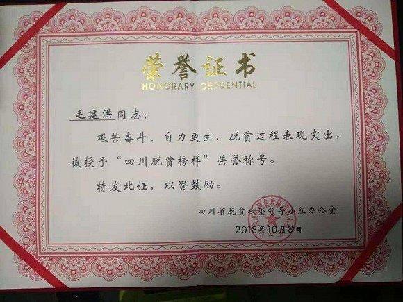 2014年是个转折点:复兴村成为洪雅县委县政府统一安排的人民银行洪雅县支行定点帮扶村。短短五年时间内,毛建洪就成为了省级脱贫先进典型人物。这也得益于洪雅支行对毛建洪一家量身打造的脱贫“三步走”计划。