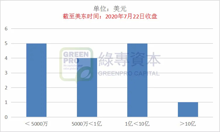 截至美东时间7月22日收盘,市值在5000万美元以下,有5家;5000万美元以上1亿美元以下,有4家;1亿美元以上10美元以下,5家;10亿美元以上,1家,即今年2月升入纽交所的TFI International Inc.(NYSE:TFII),截至美东时间7月22日收盘,该公司市值达35亿美元。