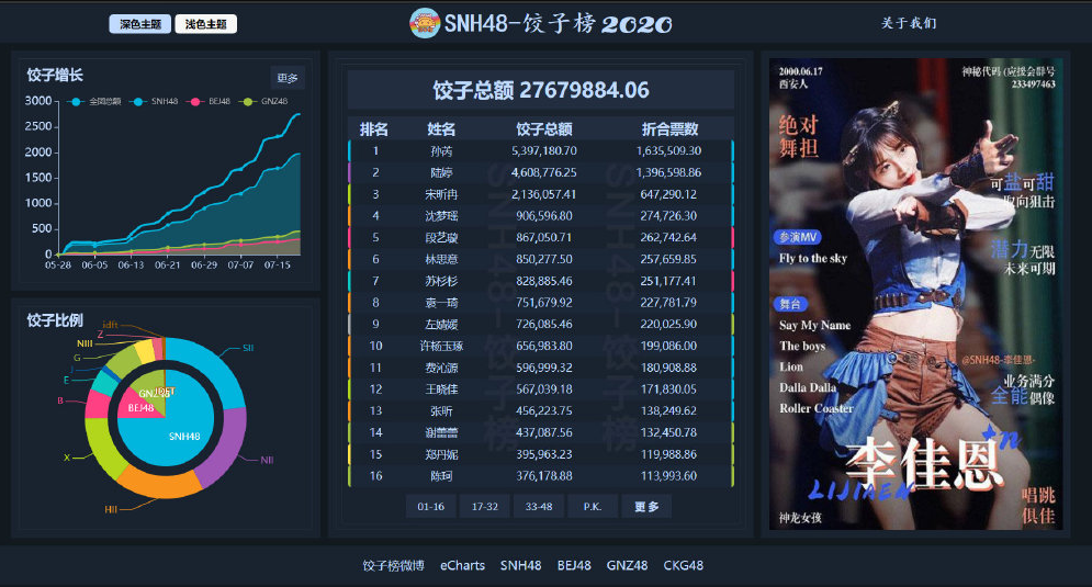 2020年的选秀节目,让48内部的集资统计组织饺子榜走进更多粉丝视野。从《青春有你2》到《炙热的我们》,每一档节目都少不了他们统计集资数据的身影。秀粉们也由此了解到SNH48饭圈内部的监督模式及资源分配模式。