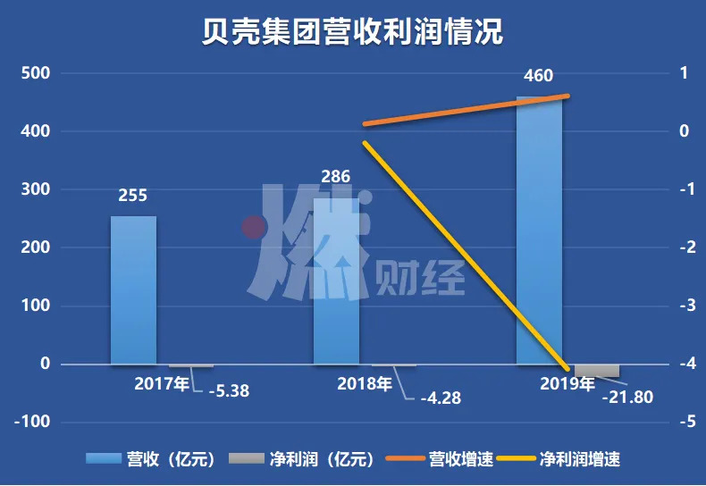 招股书显示,2019年全年贝壳集团收入460亿元,2020年第一季度,受疫情影响公司营收71亿元同比下降12.7%。