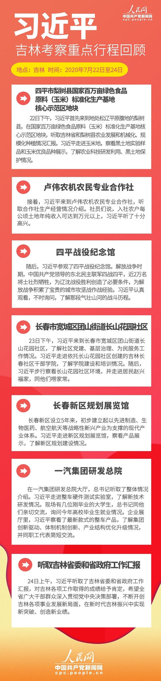 近一年后,2020年7月22日至24日,习近平总书记赴吉林就统筹推进常态化疫情防控和经济社会发展工作、推进东北振兴、谋划“十四五”时期经济社会发展进行调研。