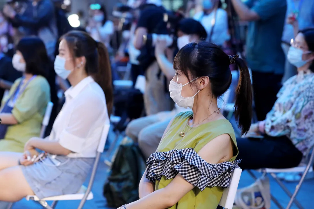 为了给市民观众提供夏夜安全观影的体验,现场防疫措施也设置得细致安全。在大宁音乐广场的现场,大家经历了从健康码出示、体温监测、双手消毒、检票验票到落座等环节在内的一整套入场过程。无论是工作人员还是电影节志愿者,都会做出专业引导。为了保证观影的安全距离,现场座位间隔一米,场内严格控制人数。每个放映点都贴心地配备了消毒液、洗手液、口罩、一次性手套等防疫用品,还配有医疗救助点,随时为观众提供必要的服务。