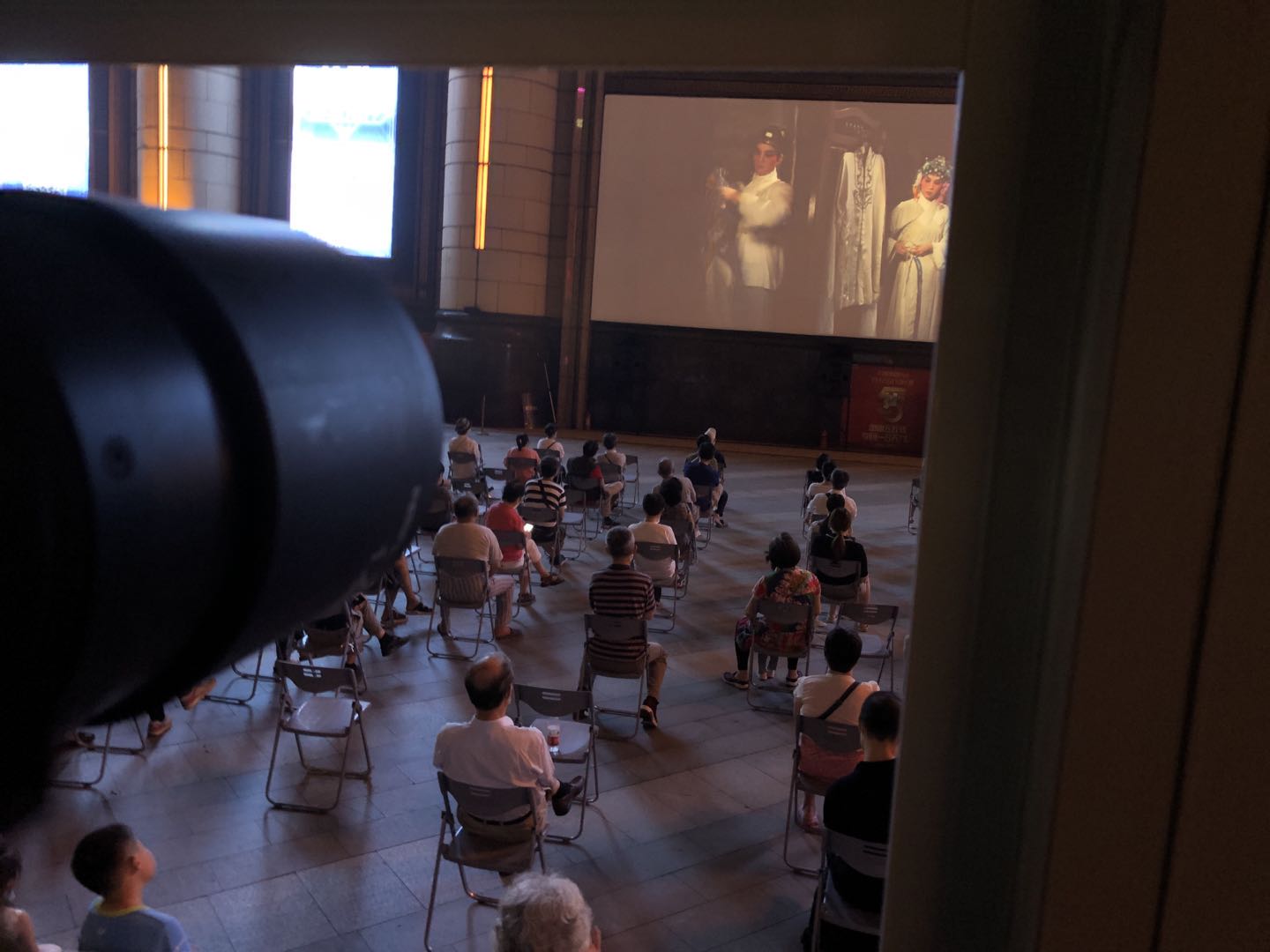 实际上,电影开始不到半个小时,场内就已满座。未能预约入场的路人也未感失望,他们倚着围栏站着观看。