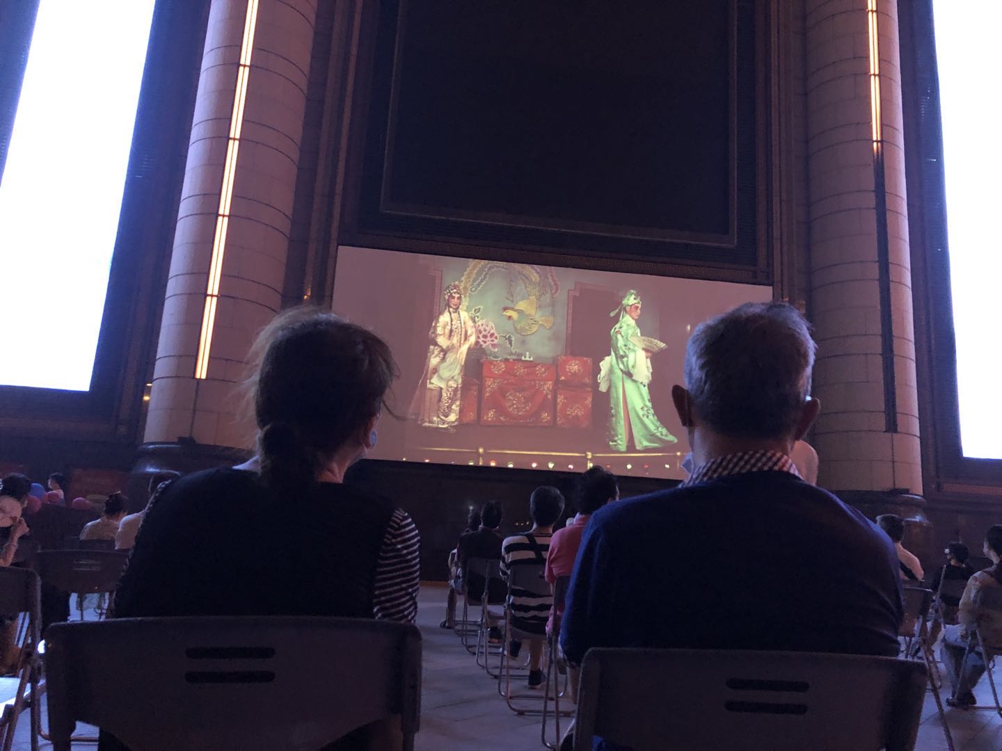 本世纪最长的梅雨季刚过,闷热的傍晚随时可能下雨。为了避免天气变化影响放映,位于静安区的大宁音乐广场在放映前三天搭建了一个塑料大棚,高约五六米,占地200多平方米,在保证安全距离的情况下,可容纳至少50名观众。