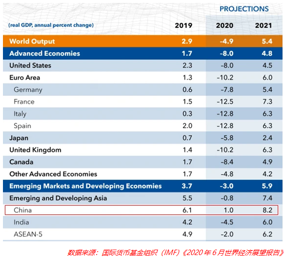 第一,中国表现出更强的疫情应对能力。根据Wind数据,截至7月13日,美国累计确诊感染新冠肺炎病例数达到347万例,英德意等国也都超过20万例,而中国的确诊病例数则被有效控制在了4月8日武汉解封时的8万左右。中国积极应对疫情,恢复经济的努力得到了世界的认可。根据国际货币基金组织(IMF)6月份发布的《世界经济展望报告》,预计2020年中国经济能够实现1%的增长,将成为全年唯一实现经济正增长的国家,同期,美国经济增长率为-8%,欧洲增长率在-10%左右。