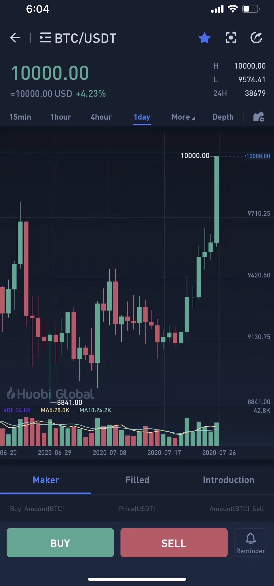 7月26日下午6点,比特币短时极速拉升,最高触及10150.15USDT,日内最大涨幅超过4%,这是今年6月2日以来首次突破1万美元关口。