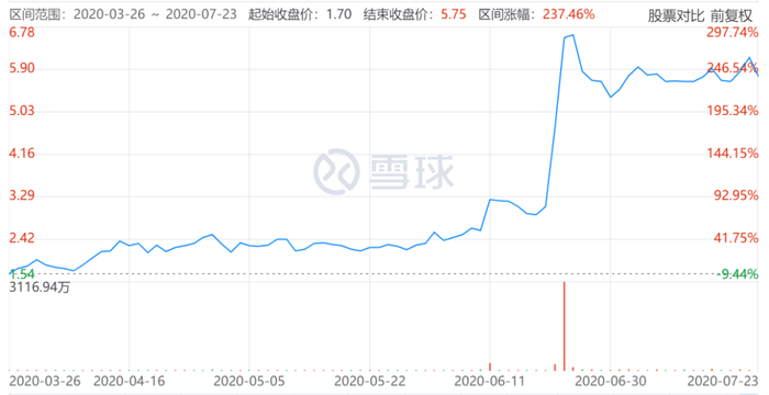 富维薄膜的扭亏,在资本市场也引起异动。富维薄膜从今年三月份1.58美元的低点,直线飙升,近期高点为6.62美元,足足涨了了四倍多。