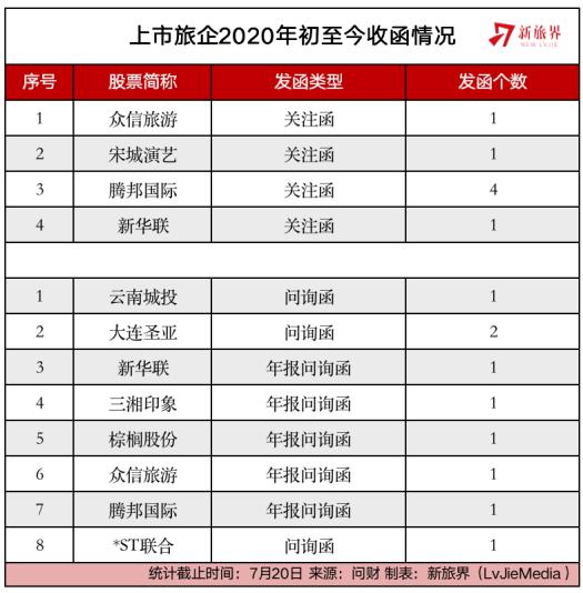 凄凄惨惨戚戚。除了业绩预告外,截至上半年末,国内A股旅企两家被ST,分别是昔日之国旅联合以及海航创新。另有4家旅企收函、8家旅企收问询函,内容大致为「重债」或「血亏」(宋城演艺等除外)。