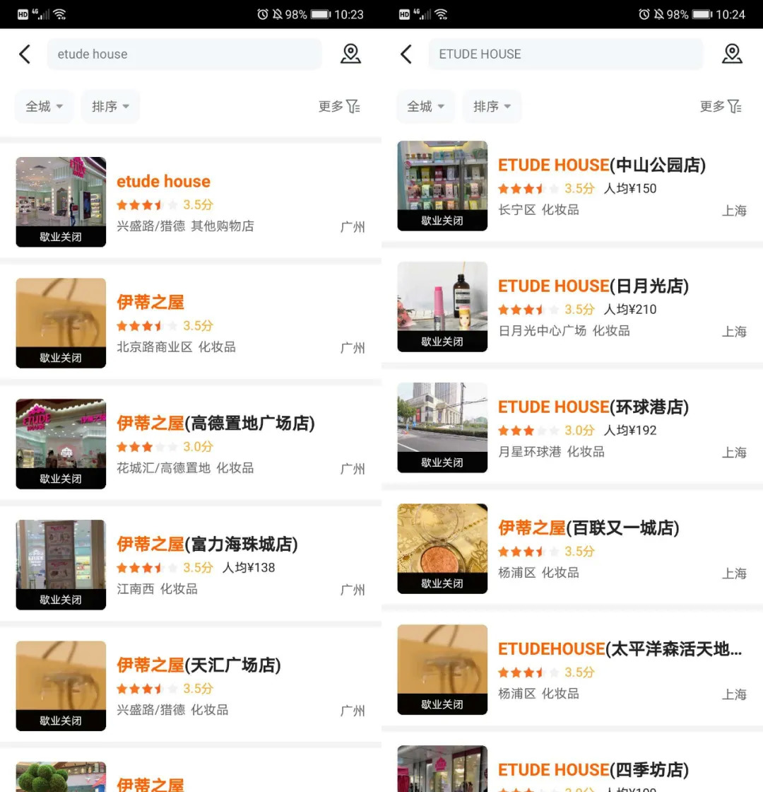 今日,青眼多次拨打上述门店电话均无人接听,美团则显示店铺已处于暂停营业状态。集中关闭数家门店,由此引发业界对于伊蒂之屋将退出线下渠道的猜测。
