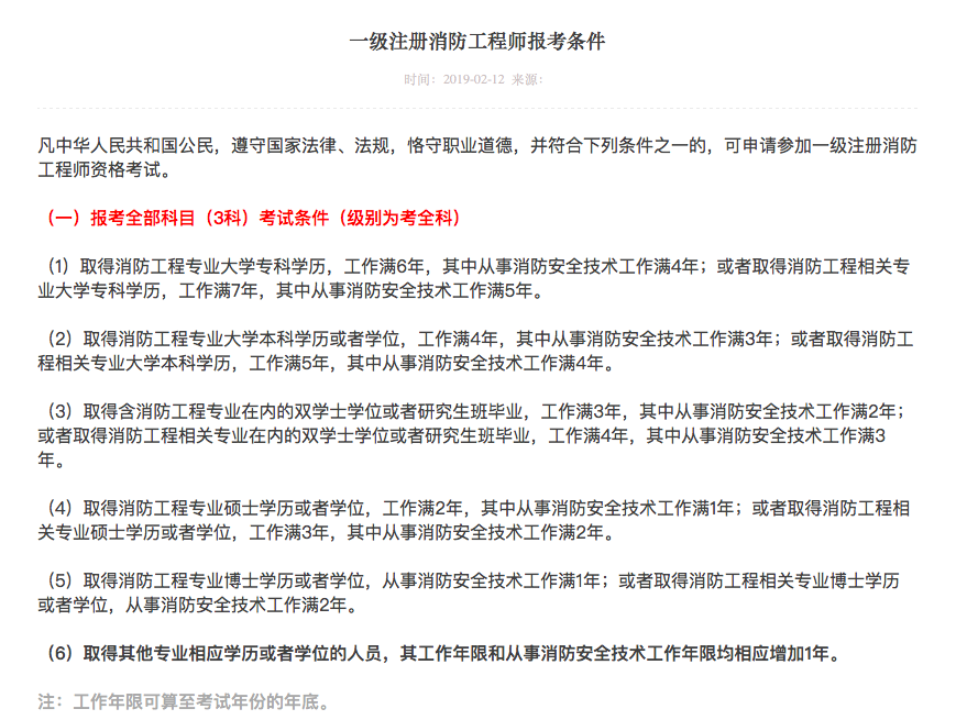 据一级注册消防工程师资格考试报名条件显示,报考人员的最低学历要求为专科,且从事消防工作满六年。