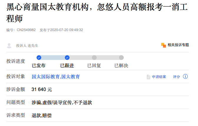 据黑猫投诉和聚投诉等平台的投诉信息显示,国太教育除了伪造学历和代报名之外,还存在虚假承诺考试包过,诱导学员报培训班购买密卷押题,却不按承诺退费等诸多问题。