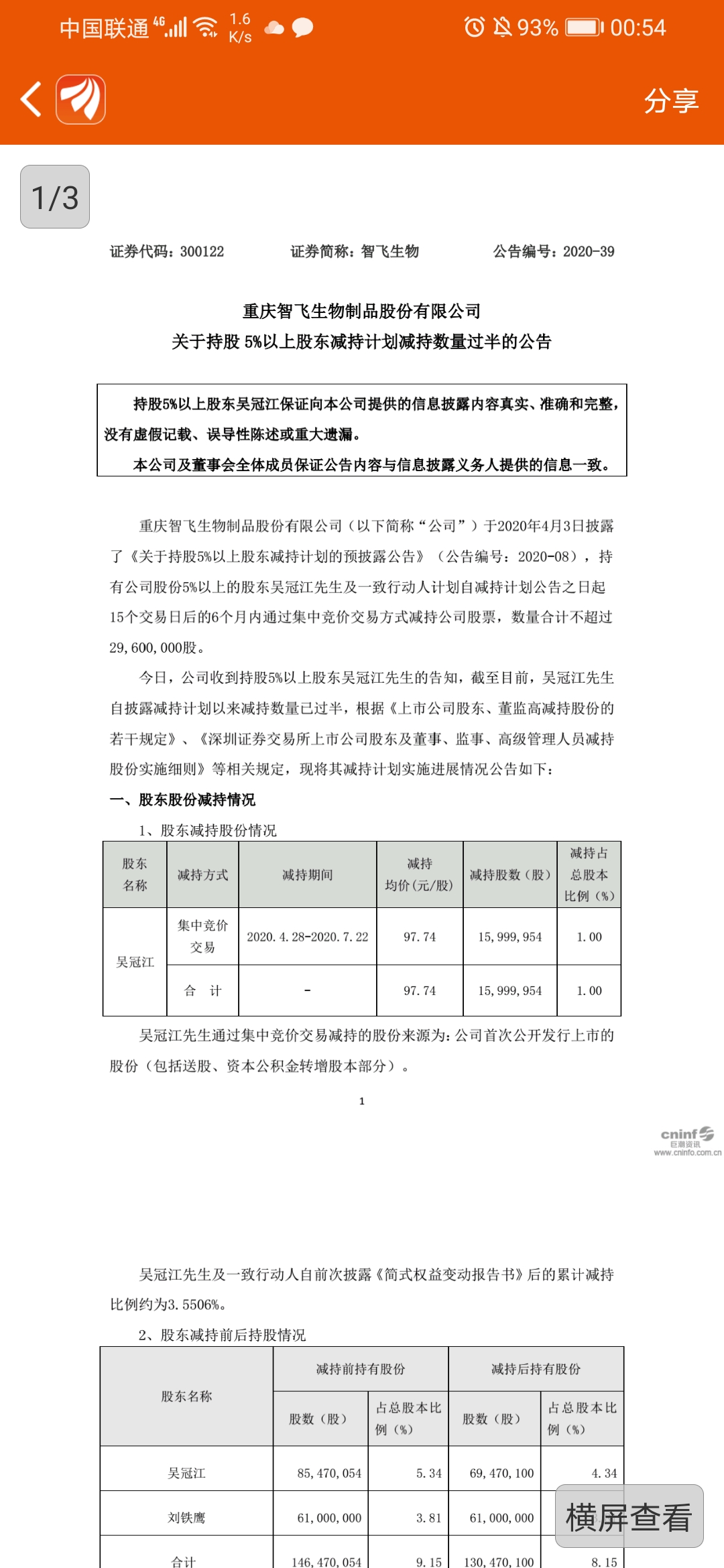 疫苗概念股智飞生物(300122.SZ)股价创下了历史新高,股东吴冠江低位两次减持,错过了最美的行情。