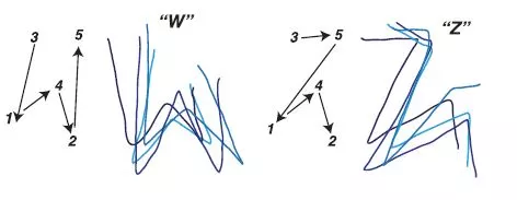 两位研究者发现,他们可以用视觉做类似的事情。他们可以在两个单独的电极之间产生磷光,从而将电极之间的点连接起来。利用这种技术,研究者在V1的表面上画出了字母形状,如“W”、“S”和“Z”。形状必须上下颠倒绘制,这就是视觉信息通常如何从我们的眼睛到达视觉皮层的方式。