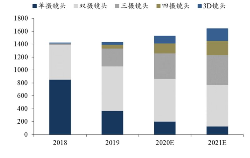 ▲2018-2021 年后置摄像头出货量(百万颗)