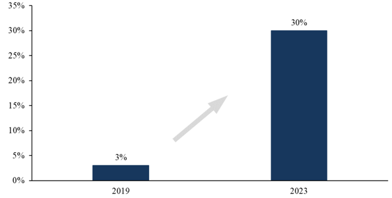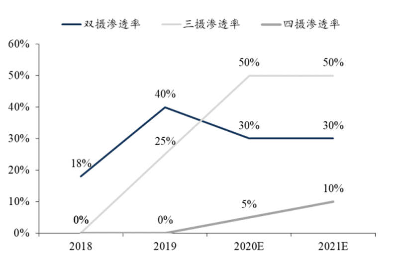 ▲2018-2021 年安卓系摄像头渗透率及预测