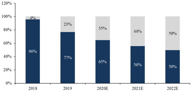 ▲ 2018-2021 年苹果摄像头渗透率及预测
