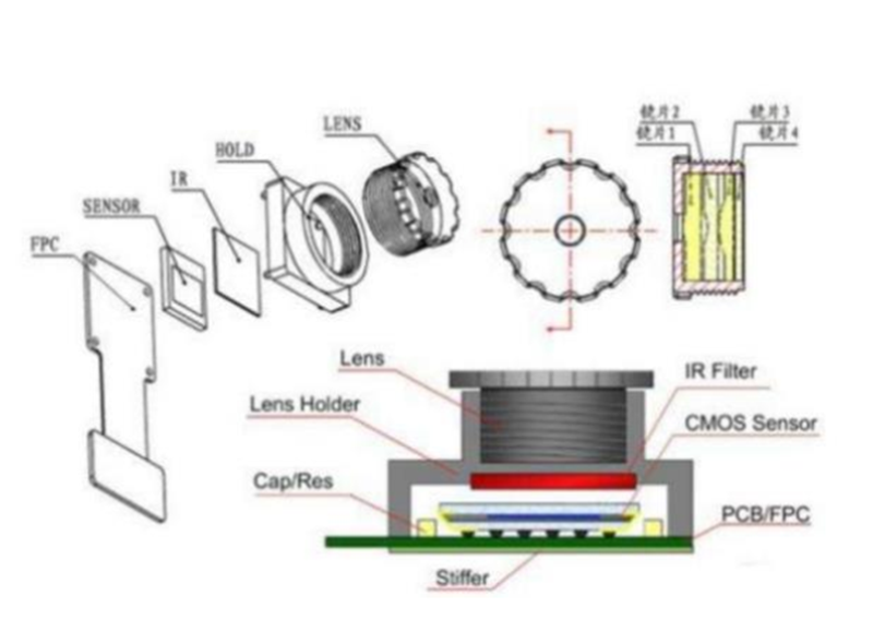 镜头(收集光线然后将物体成像到图像传感器),在摄像头组件成本中占比 20%;
